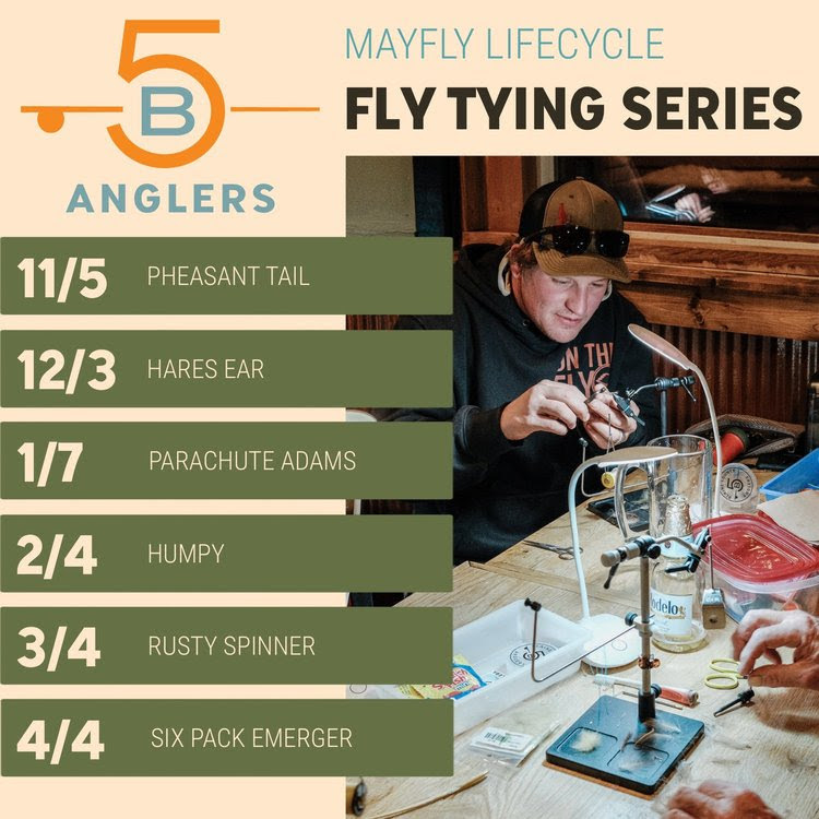 5B Anglers Fly Tying Series REGISTER HERE! + Add to Google Calendar + iCal / Outlook export 00 days 00 hours 00 minutes 00 seconds Date Feb 04 2026 - Mar 04 2026 Ongoing... Time 8:00 am - 6:00 pm Location Town Center West Category Valley Chamber Events Share this event