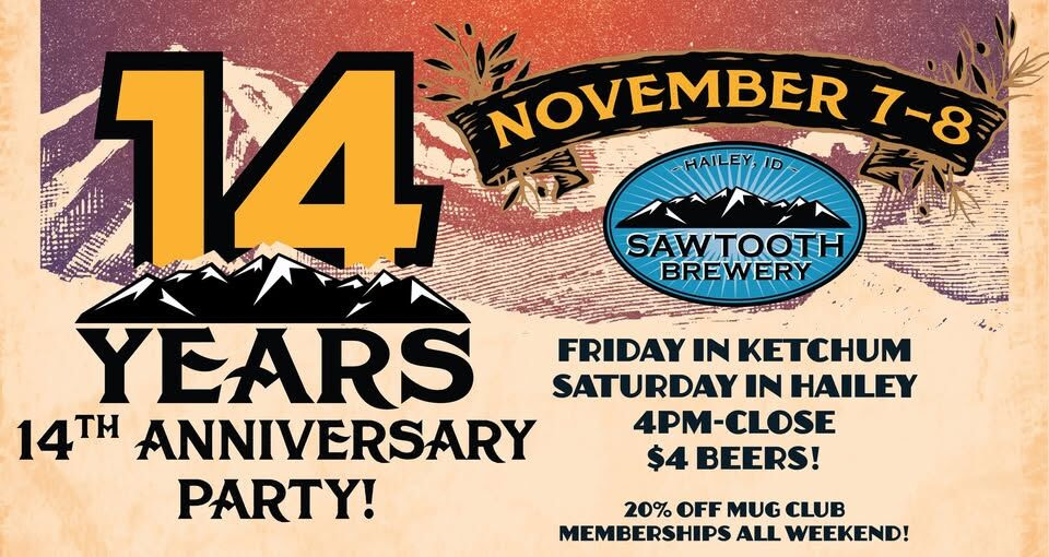 Sawtooth Brewery 14th Anniversary! + Add to Google Calendar + iCal / Outlook export The event is finished. Date Nov 07 - 08 2025 Expired! Time 4:00 pm - 9:00 pm Category Valley Chamber Events Share this event